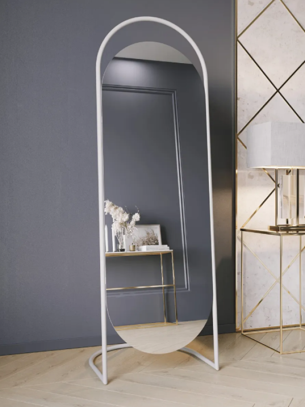 Дизайнерское напольное зеркало Glass Memory Queen в металлической раме белого цвета в Реутове