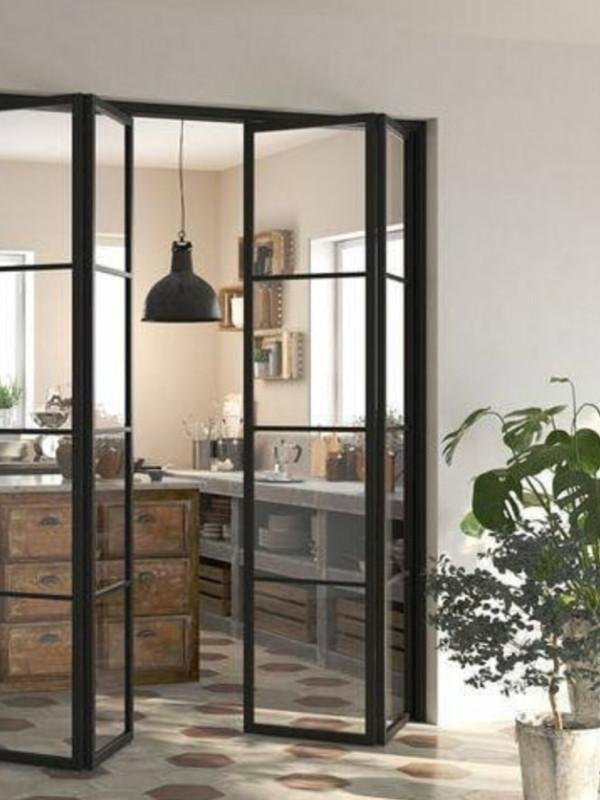 Перегородки гармошки или книжки в стиле лофт – это, пожалуй, тренд этого года. В них сочетаются функциональность и практичность. Полностью раскрыть гармошку, или компактно сдвинуть к стене – в любом виде она будет смотреться стильно.